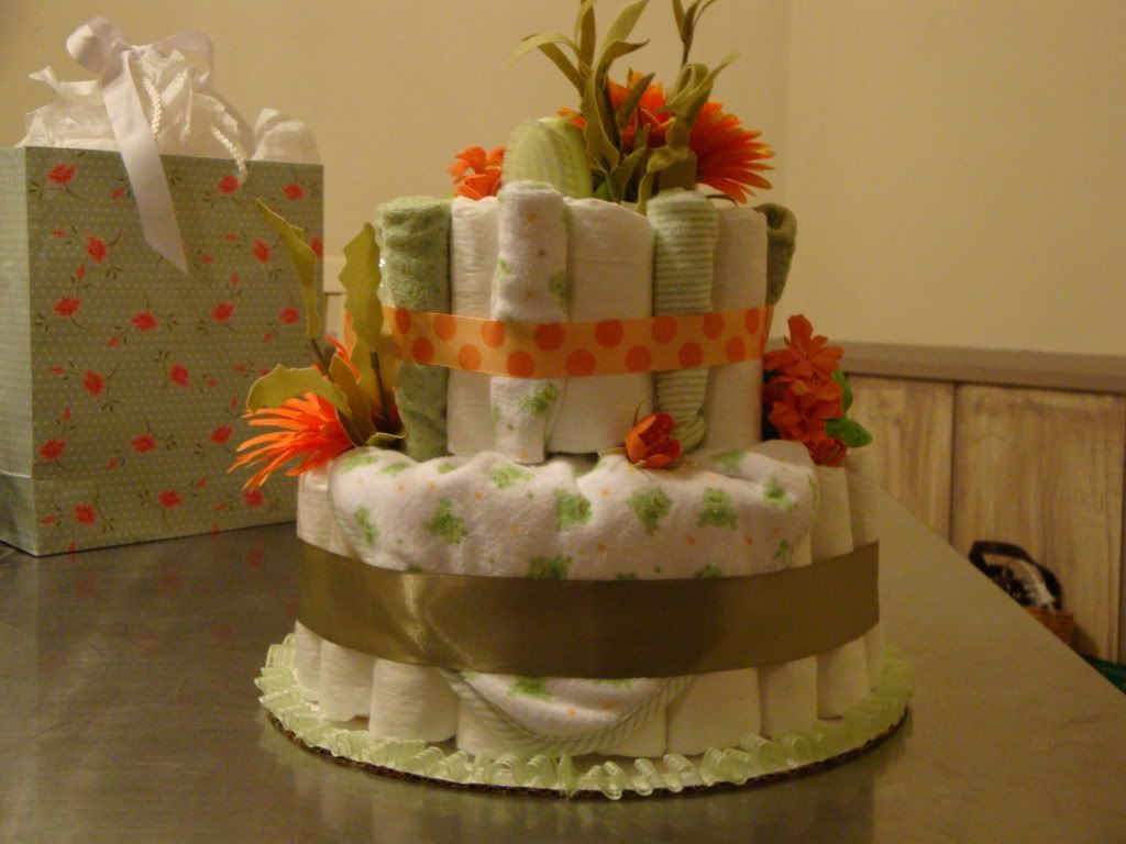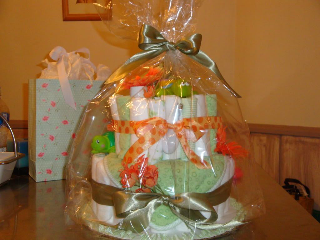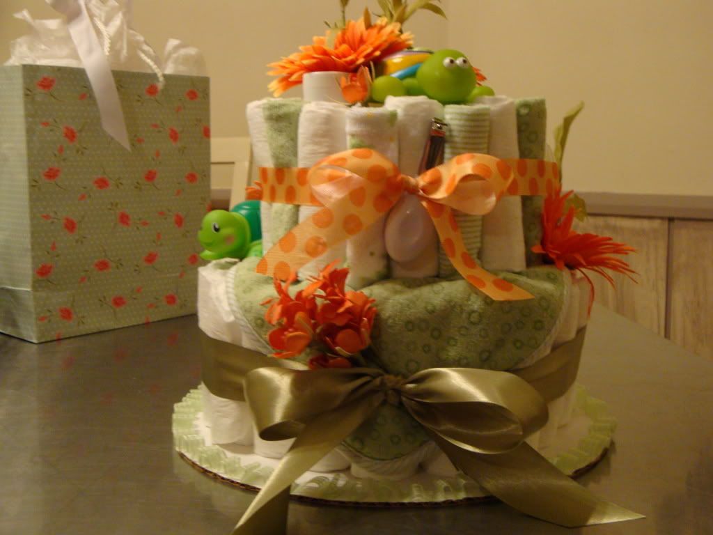 As I have said before, if I can see it I can probably do it. Years ago I ran across diaper cakes and have been making the occasional shower gift ever since. This actually works out perfect for me since I love to shop for baby incidentals and I love a crafty project.